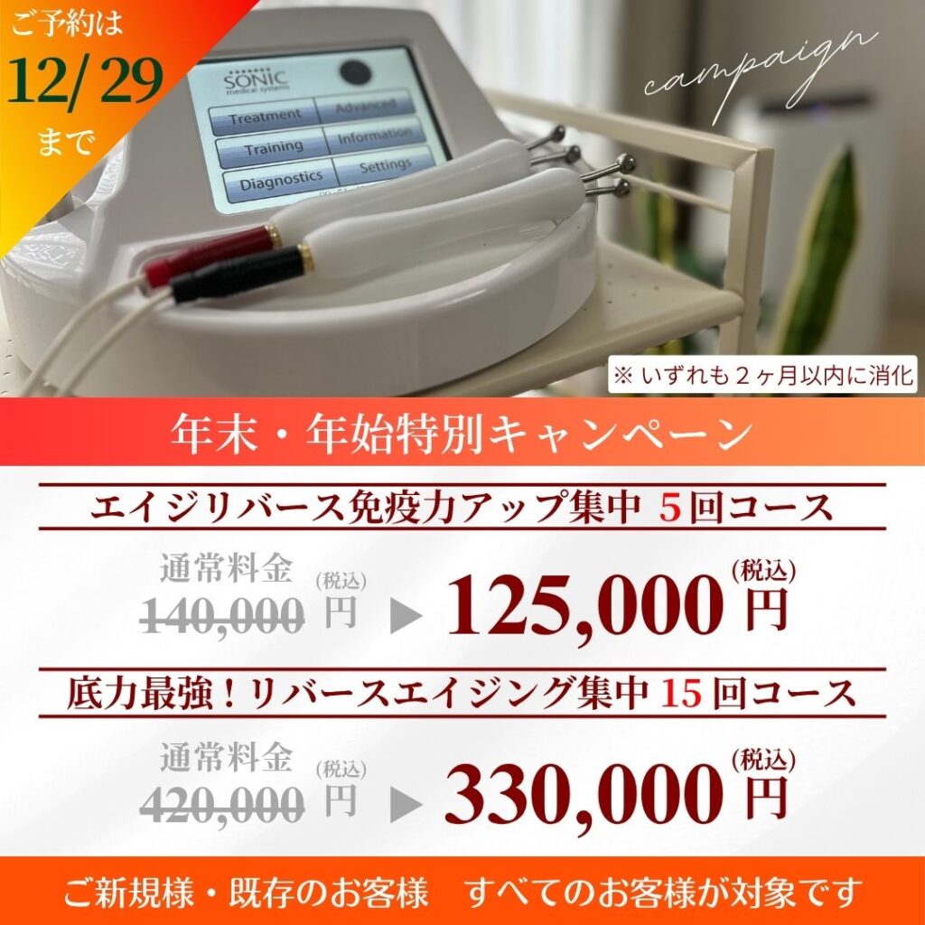 4周年記念キャンペーンで3回集中コースをご選択されたお客様は、引き続き12月のキャンペーンをご利用される事で更にお得になります!!
